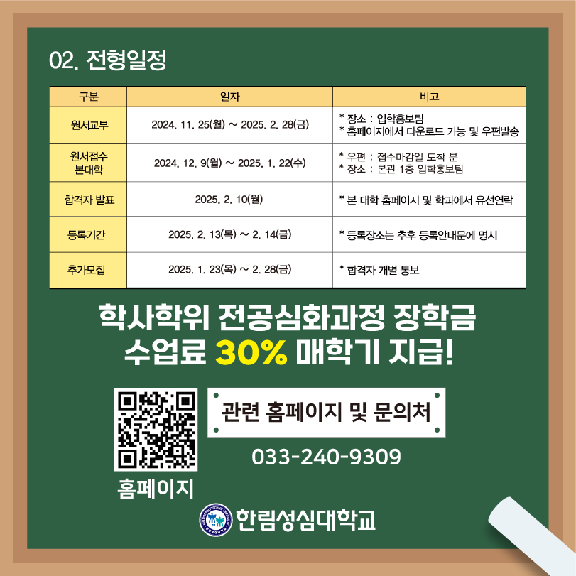 | 2025학년도 한림성심대학교 장학금 안내 (0) | 2024.11.20 |