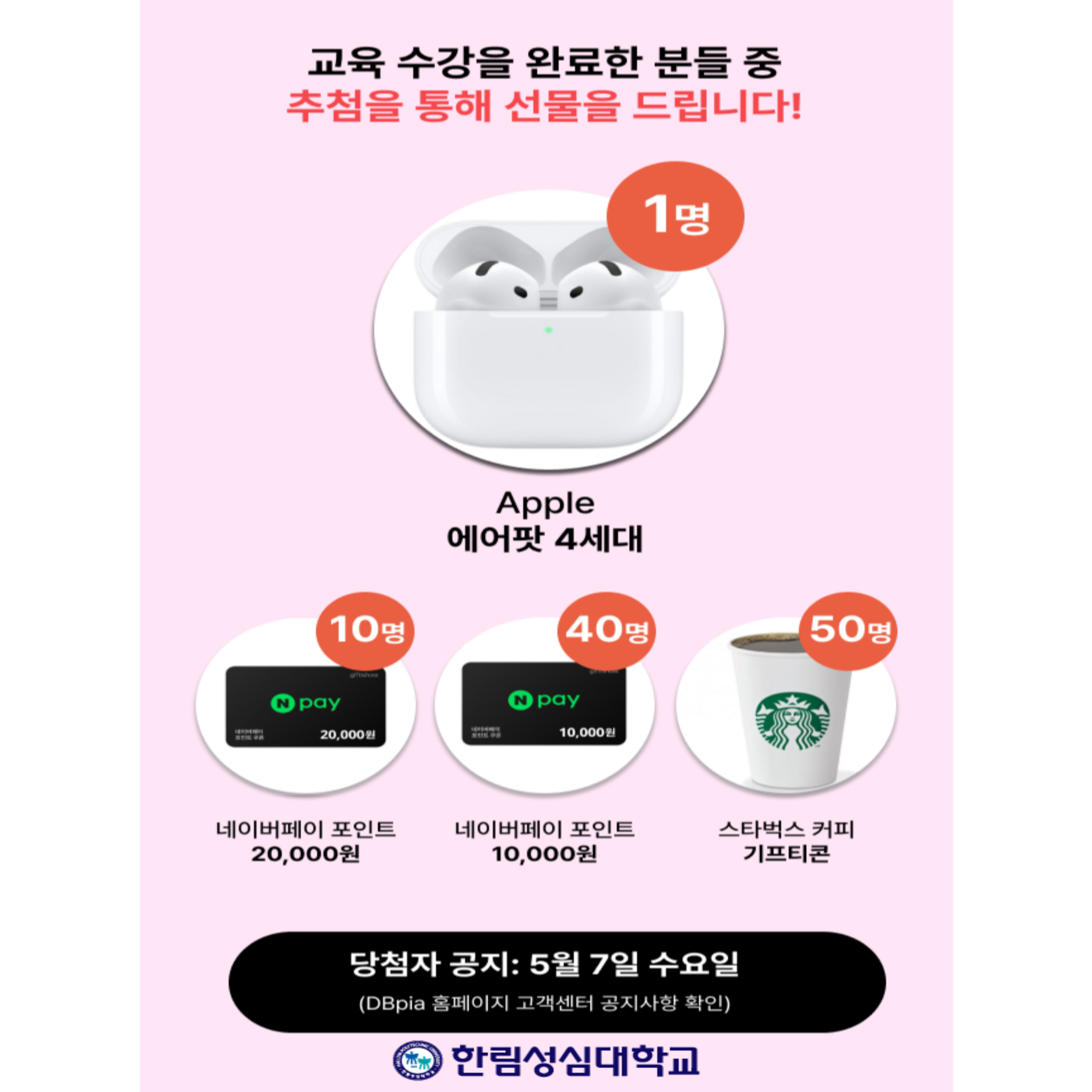 3) 수강만 해도 에어팟, 네이버페이, 스타벅스 기프티콘 당첨 찬스까지!?