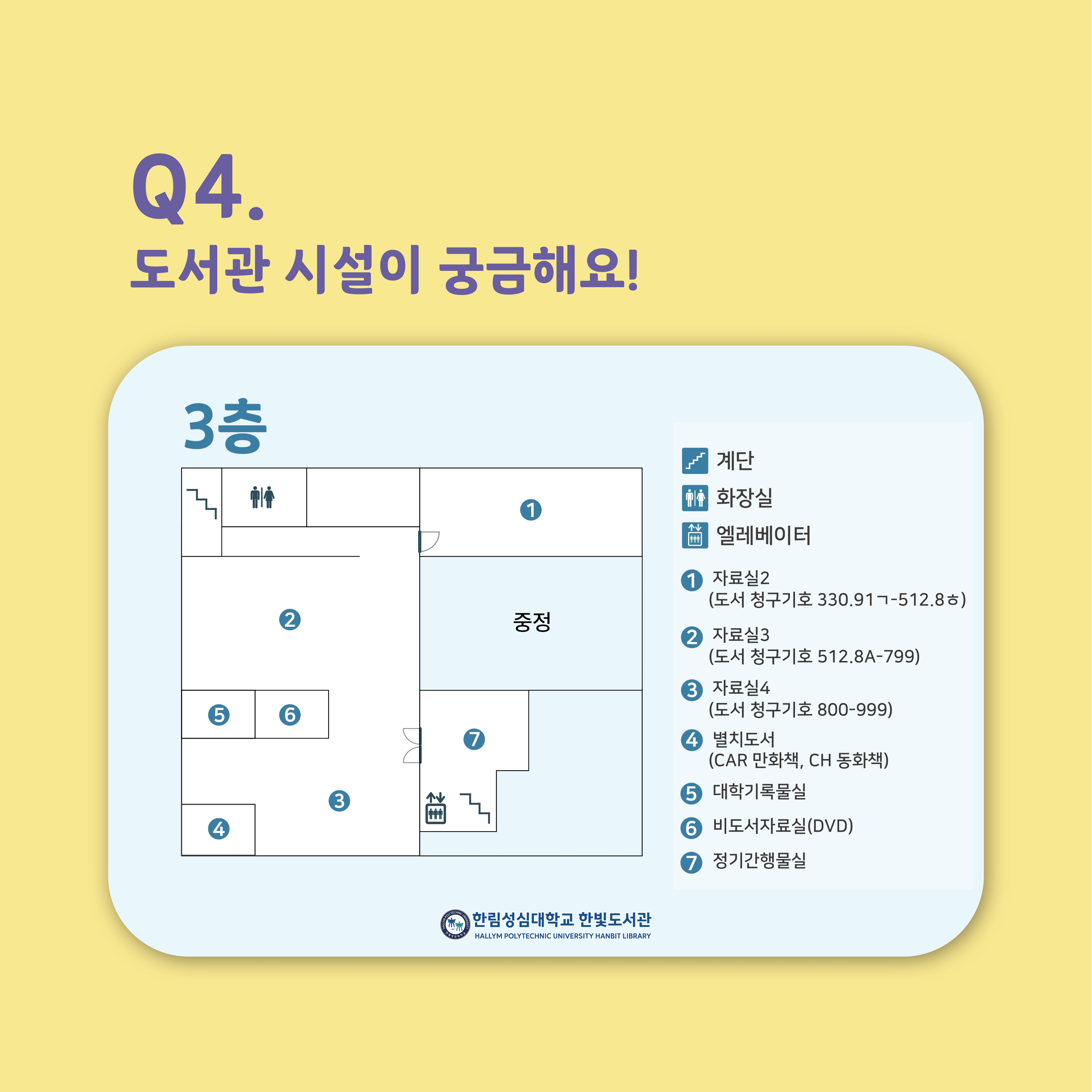 📍 3층: 자료실2~4, 정기간행물실, DVD실 등