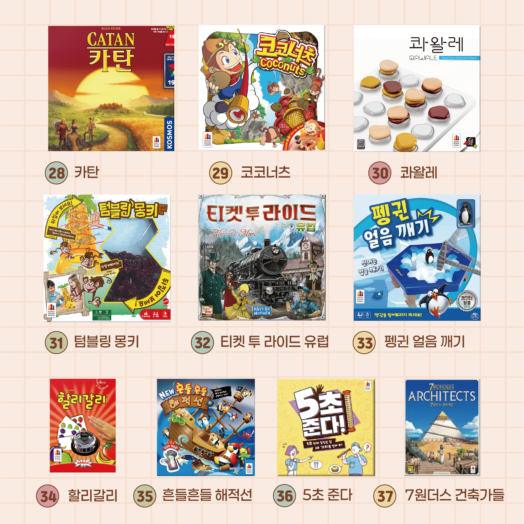 총 37종의 인기 보드게임이 준비되어 있어요!