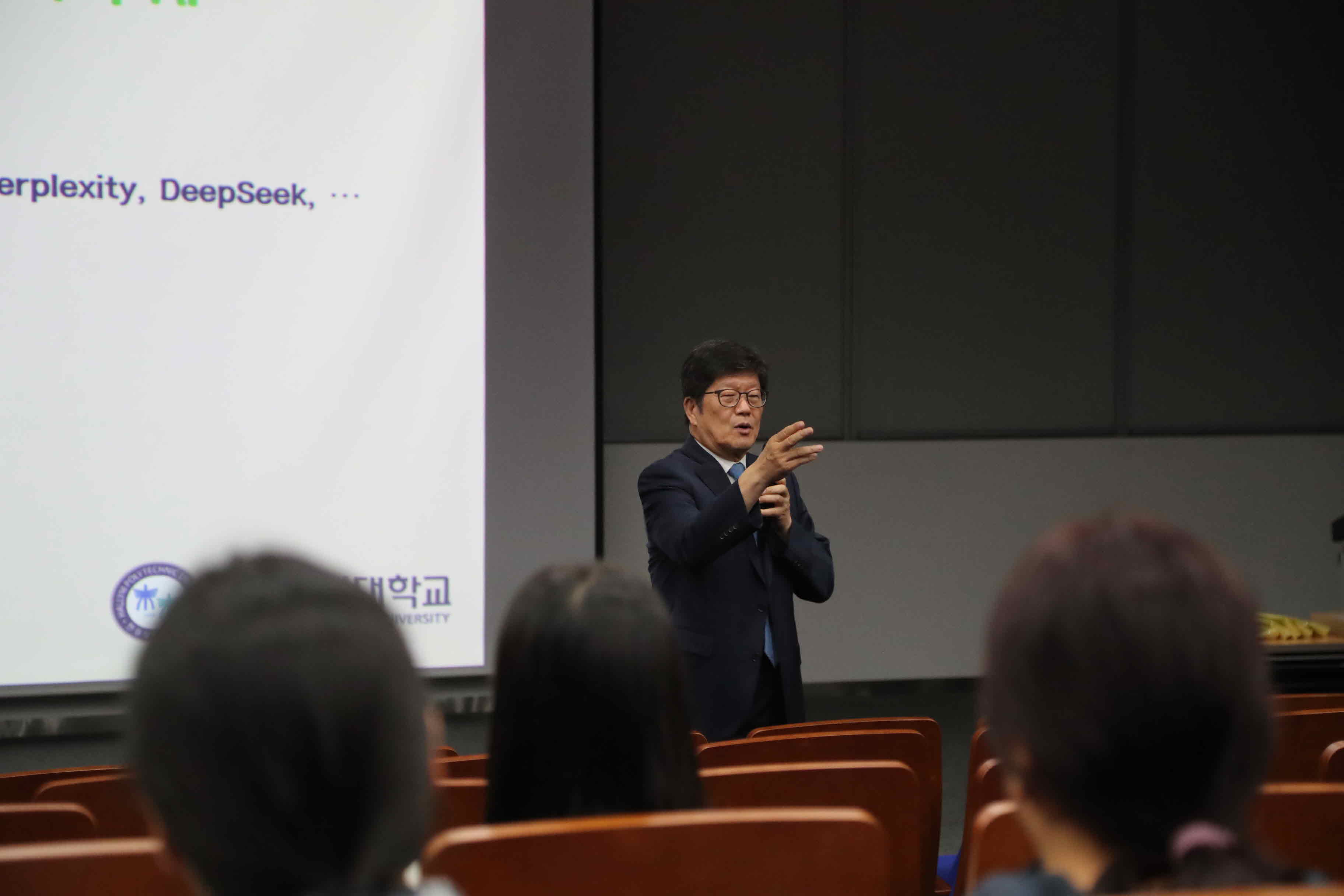 금일 행사는 재학생 약 130여명이 자리를 매운 가운데 ‘미래사회와 인공지능’을 주제로 한 문영식 총장의 인문학 특강을 진행하였고, 강의가 끝난후에는 학생들의 학과 및 대학 발전에 관한 의견 청취와 학업·취업·진로 등 다양한 고민에 대해 질의응답을 나누는 시간을 가졌다.