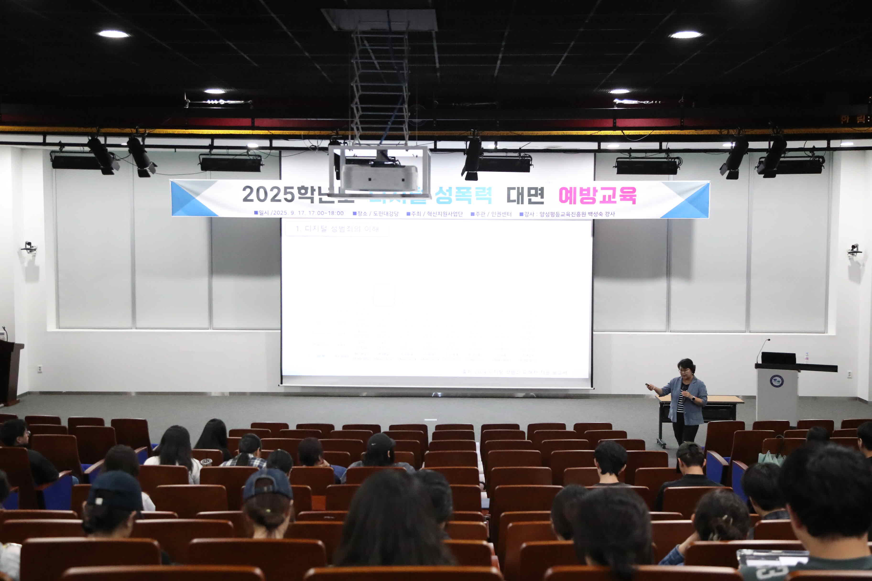 우리대학 인권센터에서는 9월 17일 교내 도헌대강당에서 재학생 80여명을 대상으로 한 디지털 성폭력 예방교육을 진행하였다.