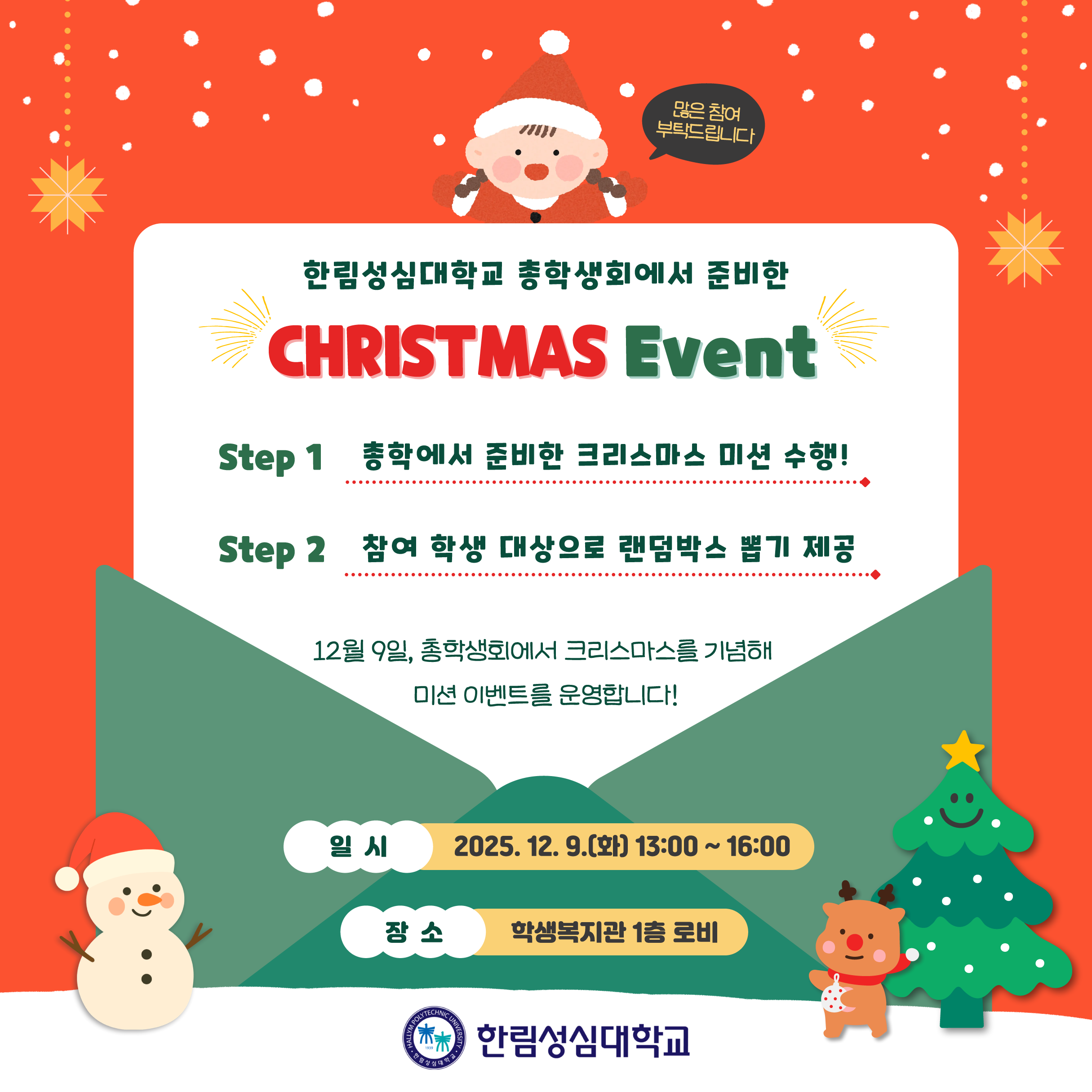 한림성심대학교 총학생회가 준비한 CHRISTMAS EVENT가 찾아왔어요! 🎅🎁