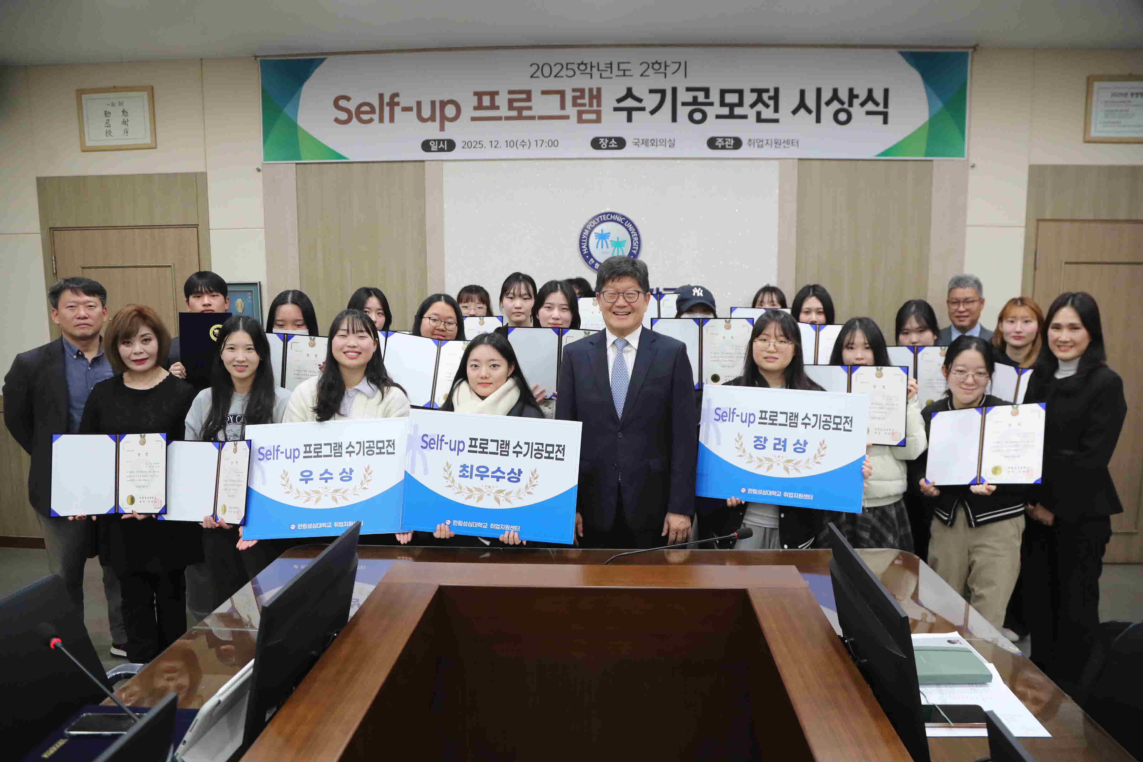 우리대학은 학생들의 바른 인성 함양과 자기계발을 위해 진행된 ‘Self-up 프로그램 수기공모전’ 에 대한 시상식이 지난 10일 교내 국제회의실에서 개최되었다.