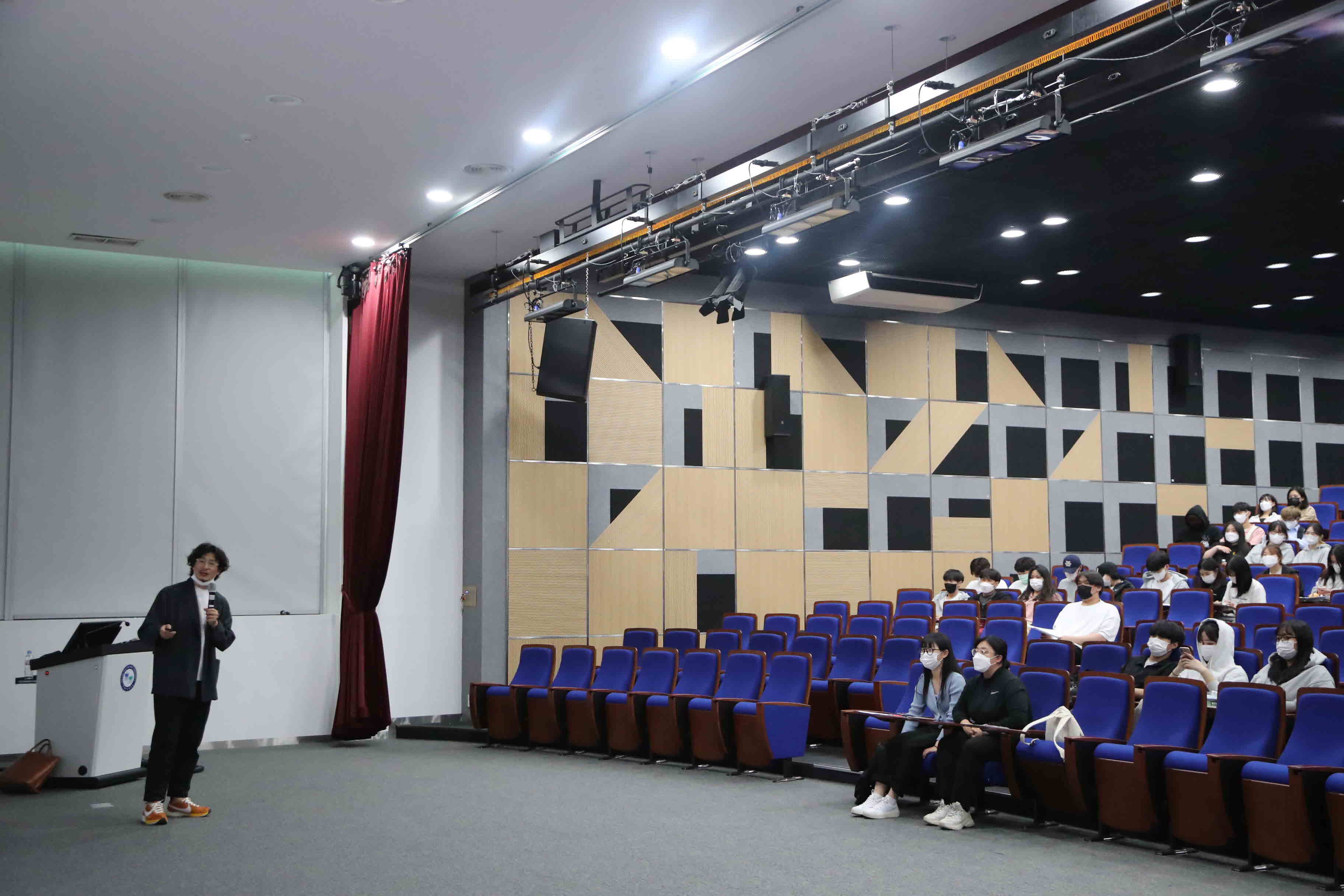 특히 18일에는 배달문화에 익숙한 MZ세대들이라면 모두가 알고 있는 앱 ‘배달의 민족’의 운영사 (주)우아한형제들의 한명수 크리에이티브 부문장을 초청하여 ‘소통하는 법’이라는 주제로 교내 도헌대강당에서 특강을 실시, 90여명의 학생이 참여하였습니다.