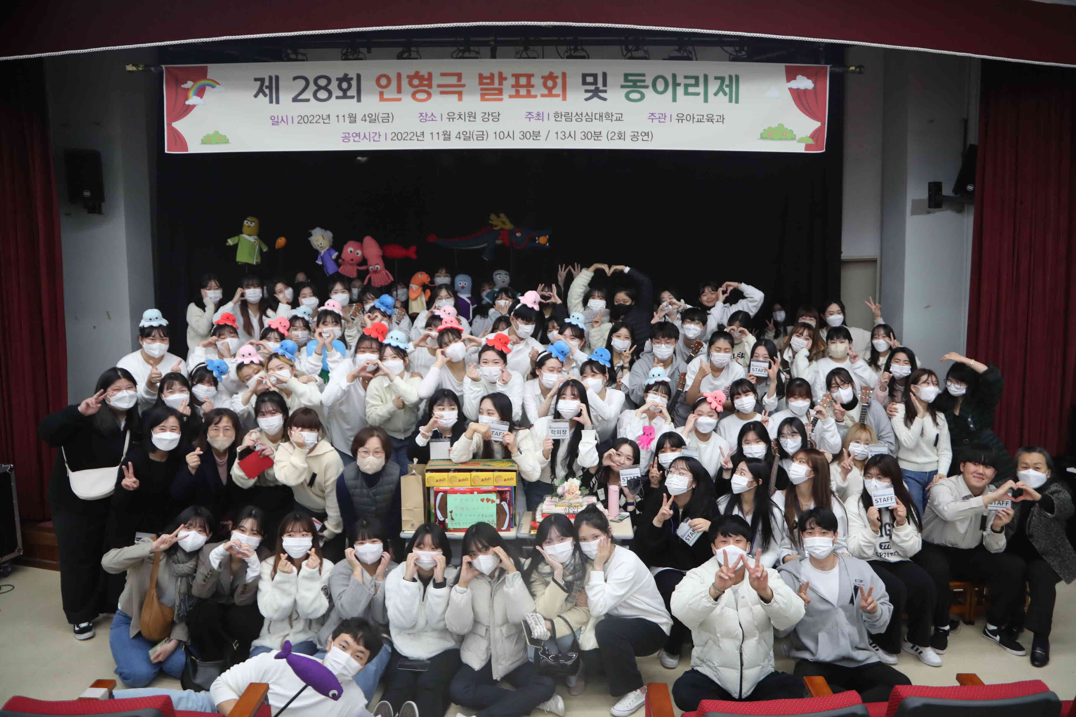 우리대학 유아교육과는 4일 교내 한림유치원 강당에서 춘천지역 13개 유치원 및 어린이집 300여 명의 아동을 초대한 가운데 제28회 인형극 발표회 및 동아리제를 진행했다.