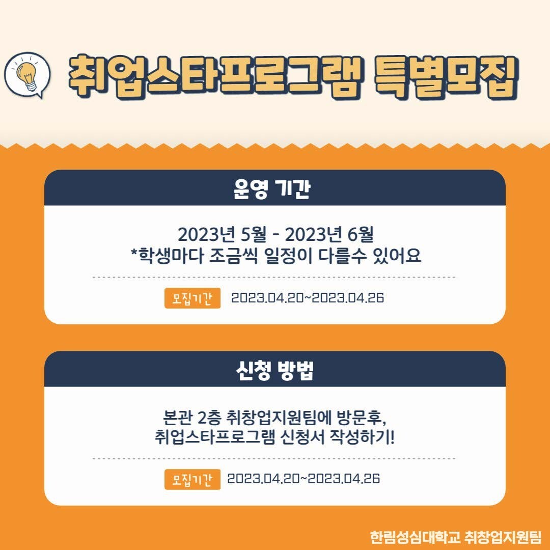2023년 한림성심 취업스타 프로그램에 대해 아래와 같이 알리오니