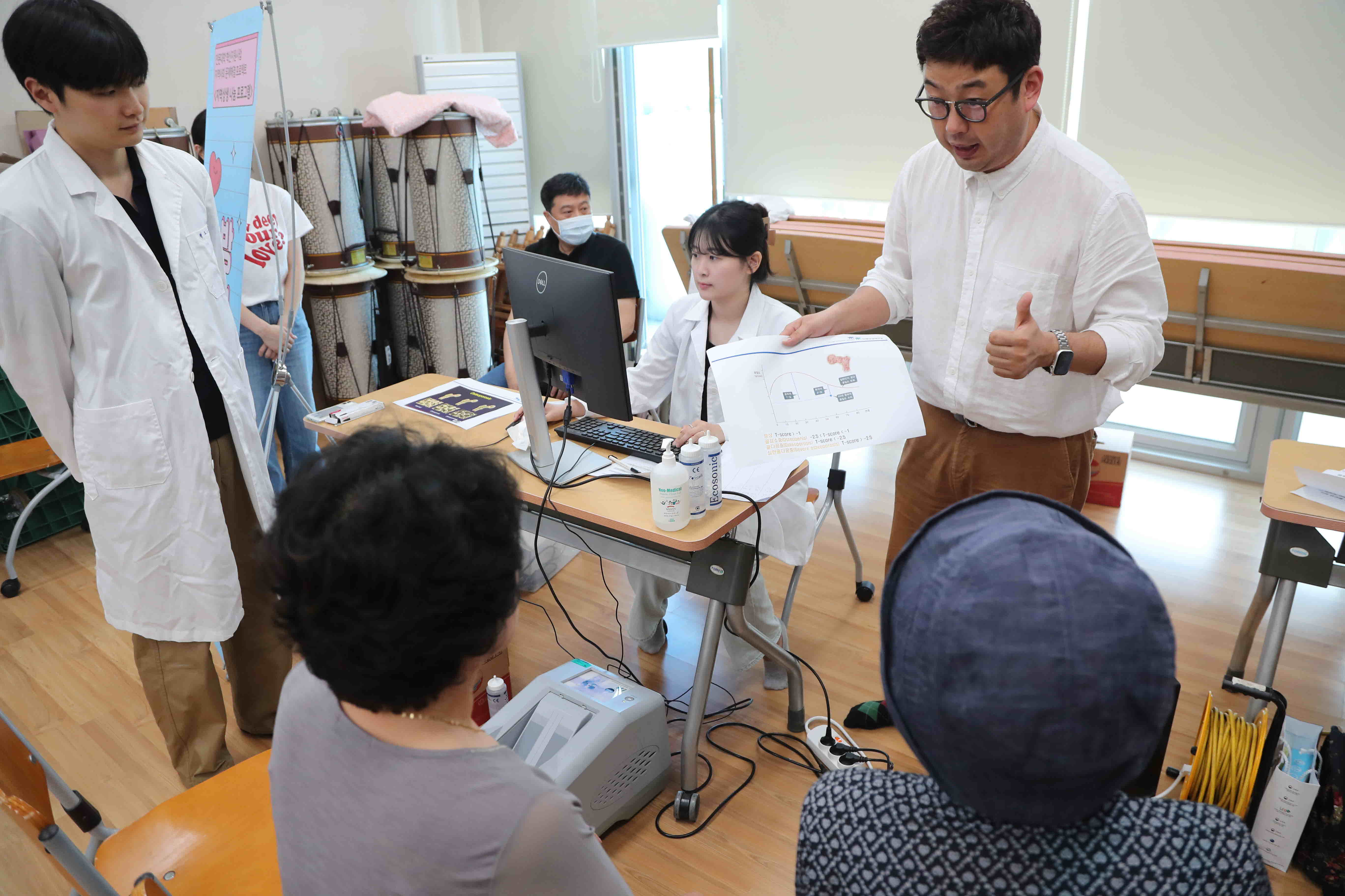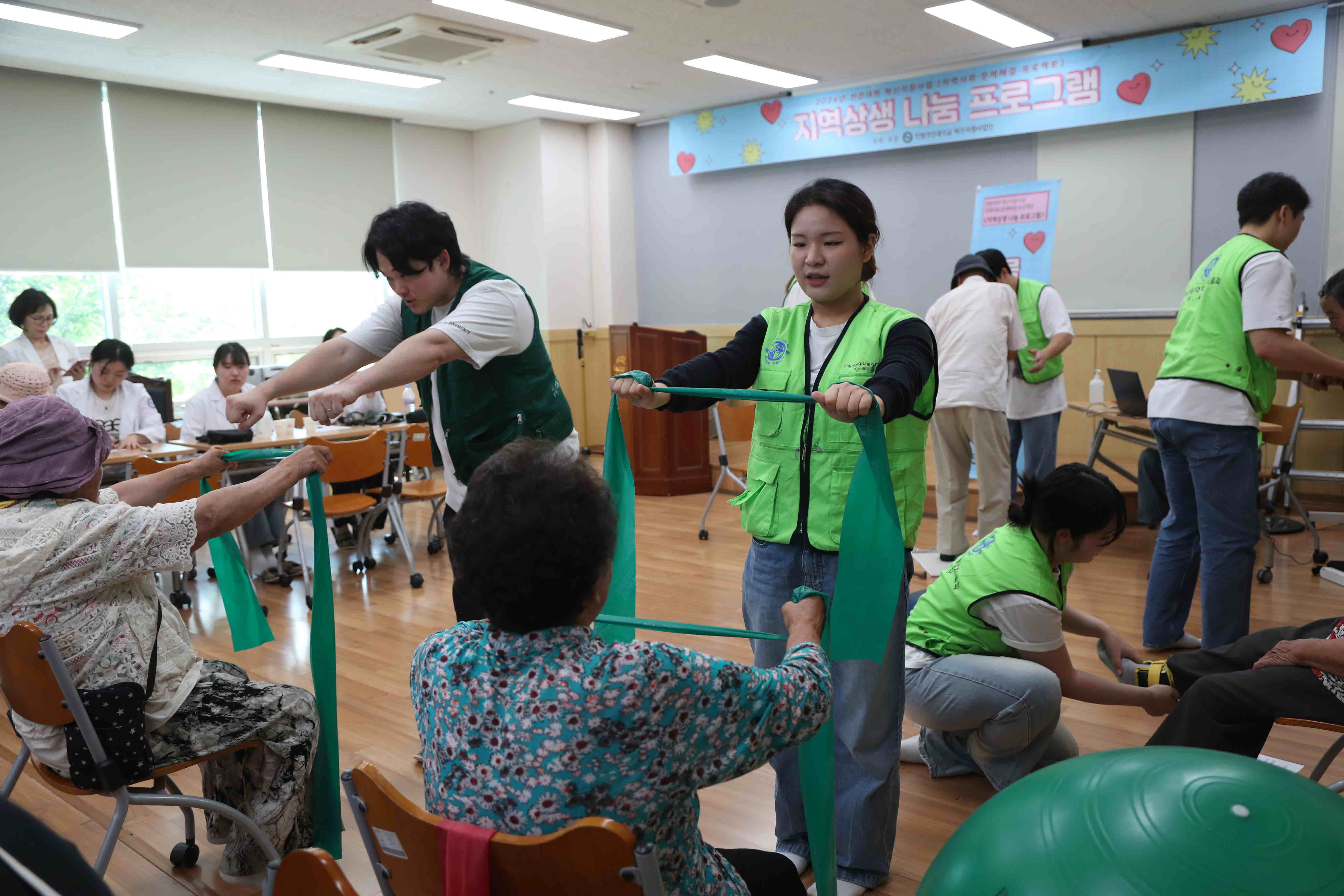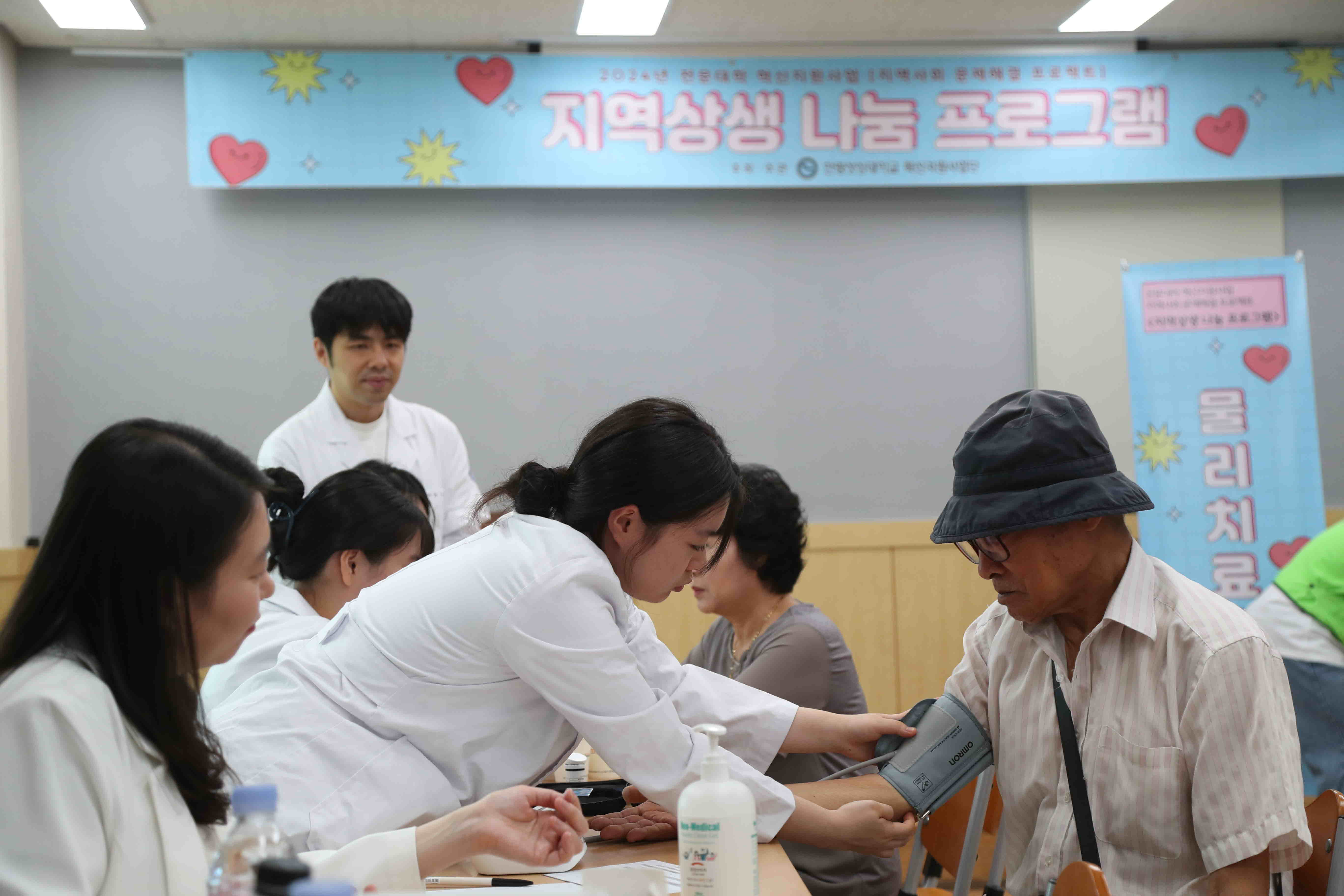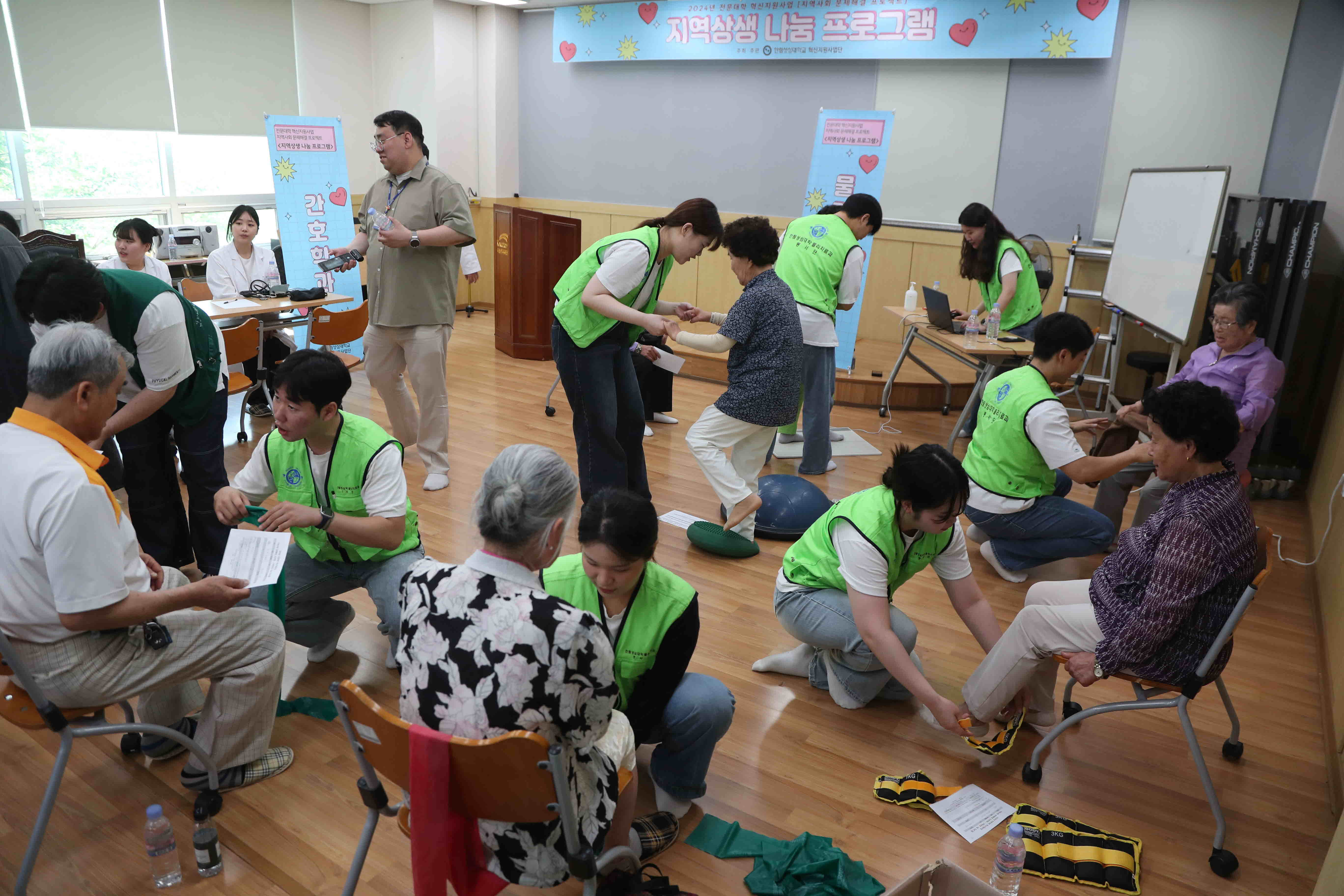 6월 21일에는 보건계열의 3개학과(간호학과, 물리치료과, 방사선과) 학생 및 교수가 소양강댐노인복지관을 찾아 지역사회 주민과 노인을 대상으로 생활밀착형 의료서비스를 제공하였고, 오는 28일에는 치위생과가 추가로 함께 춘천북부노인복지관을 방문할 계획이다.